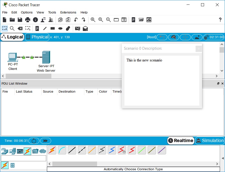 6. 浏览教程查看Packet Tracer中的各个组件如何工作。